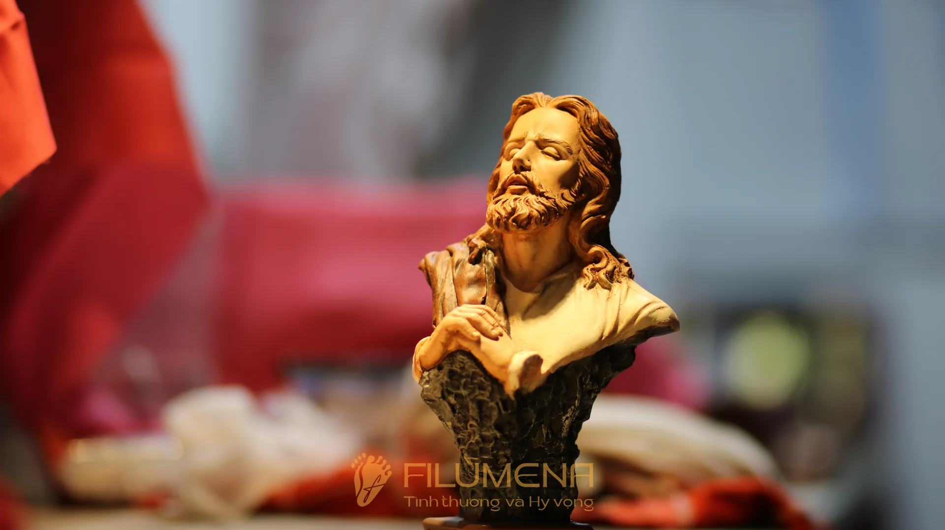Tượng được vẽ màu thủ công, chất liệu bột đá, cao 18 cm. Tượng sẽ có mặt tại các đại lý trên toàn quốc trong Mùa Chay 2025.