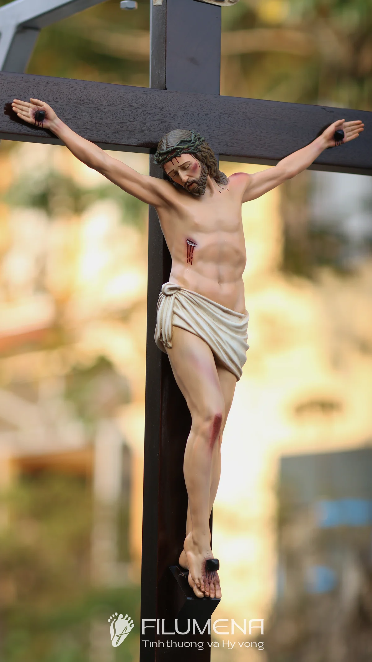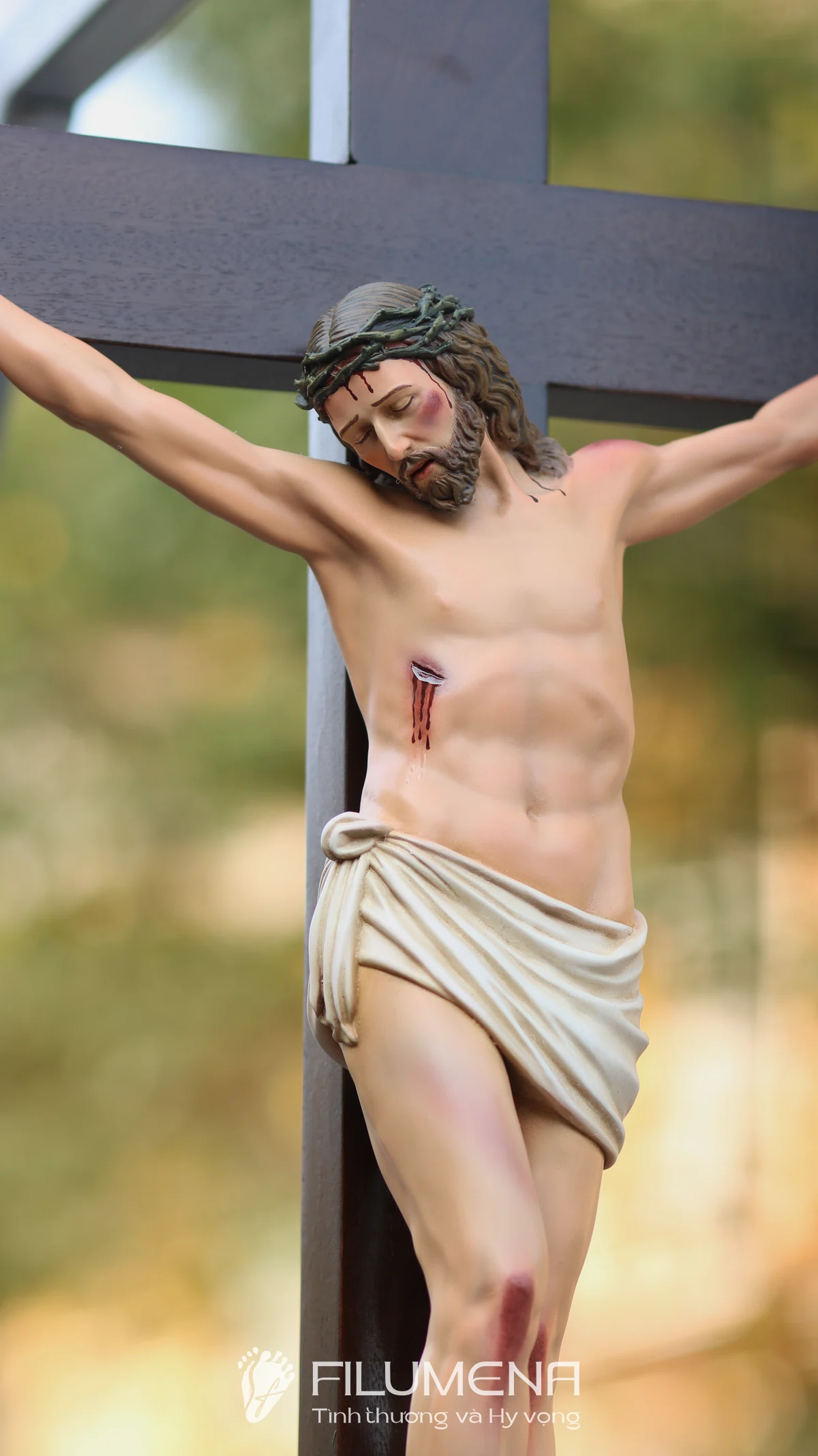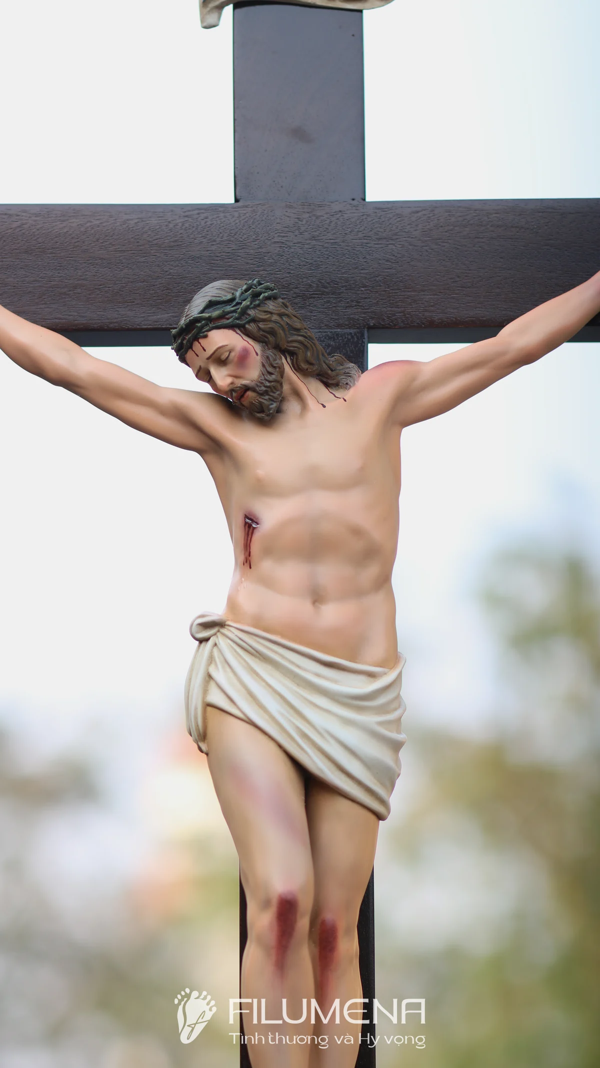 Thân tượng Chúa được thể hiện với tỷ lệ hài hòa 40 cm, dáng mình mềm nhưng không bi lụy, nhấn mạnh tình yêu tự hiến hơn là sự dữ dội của đau khổ.