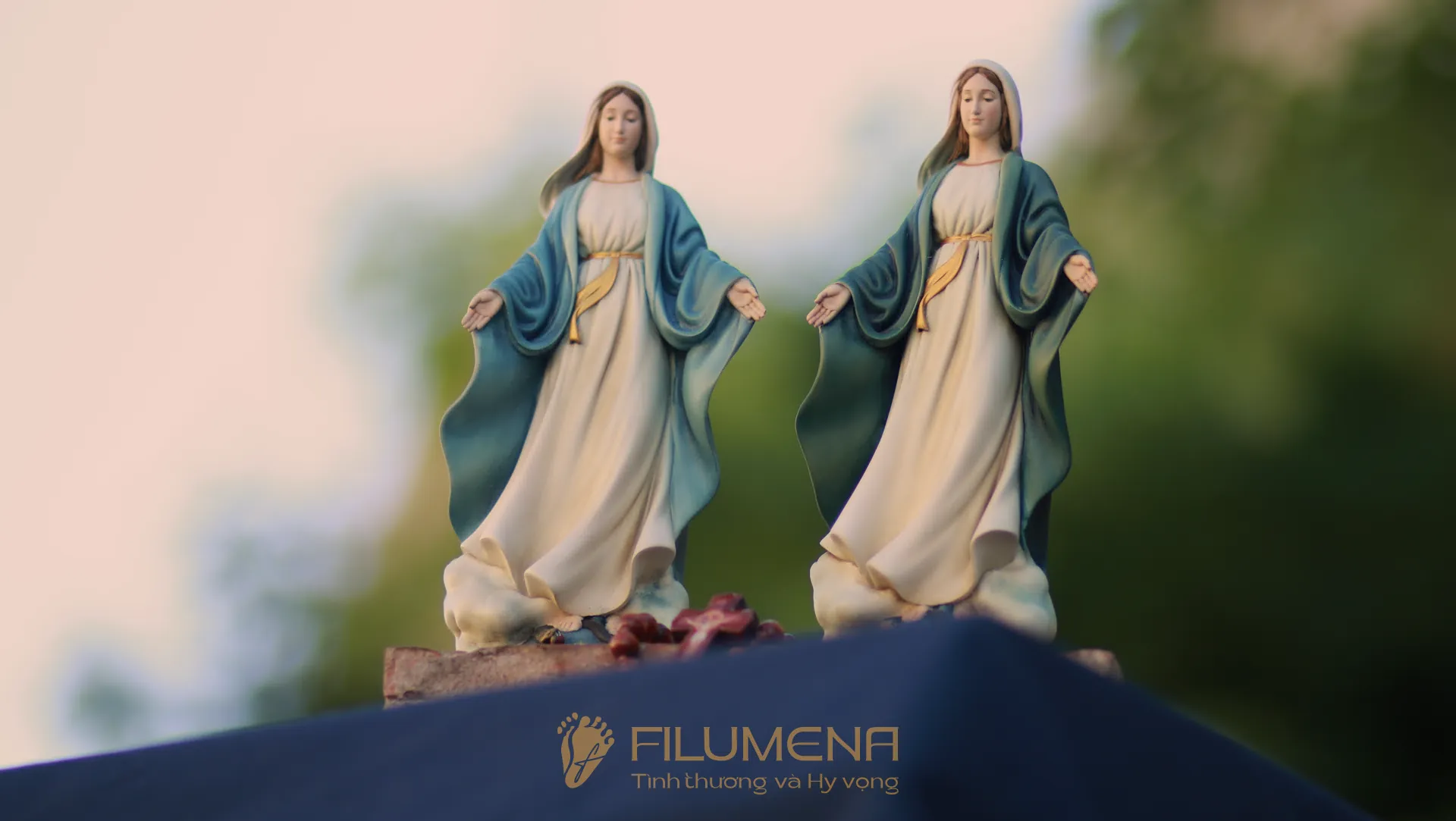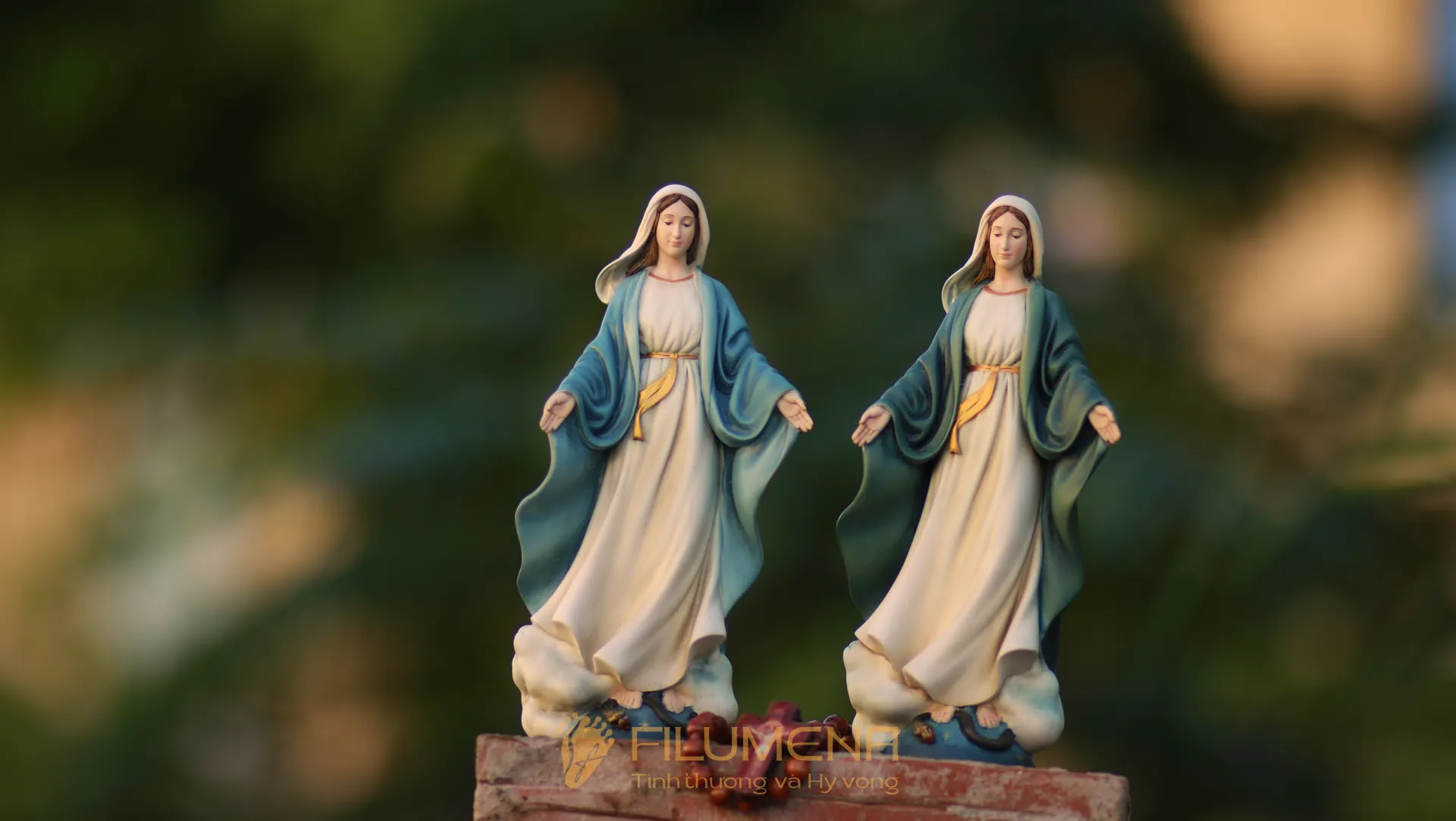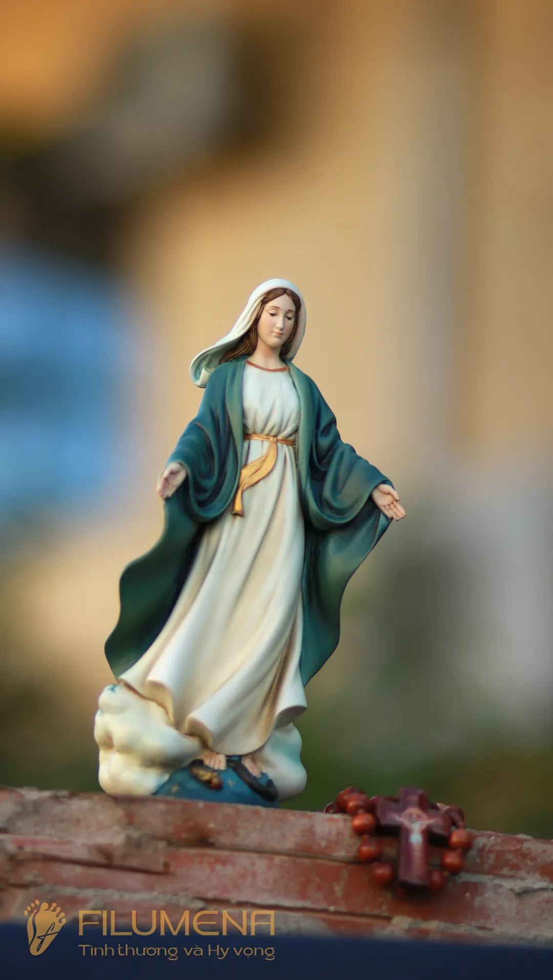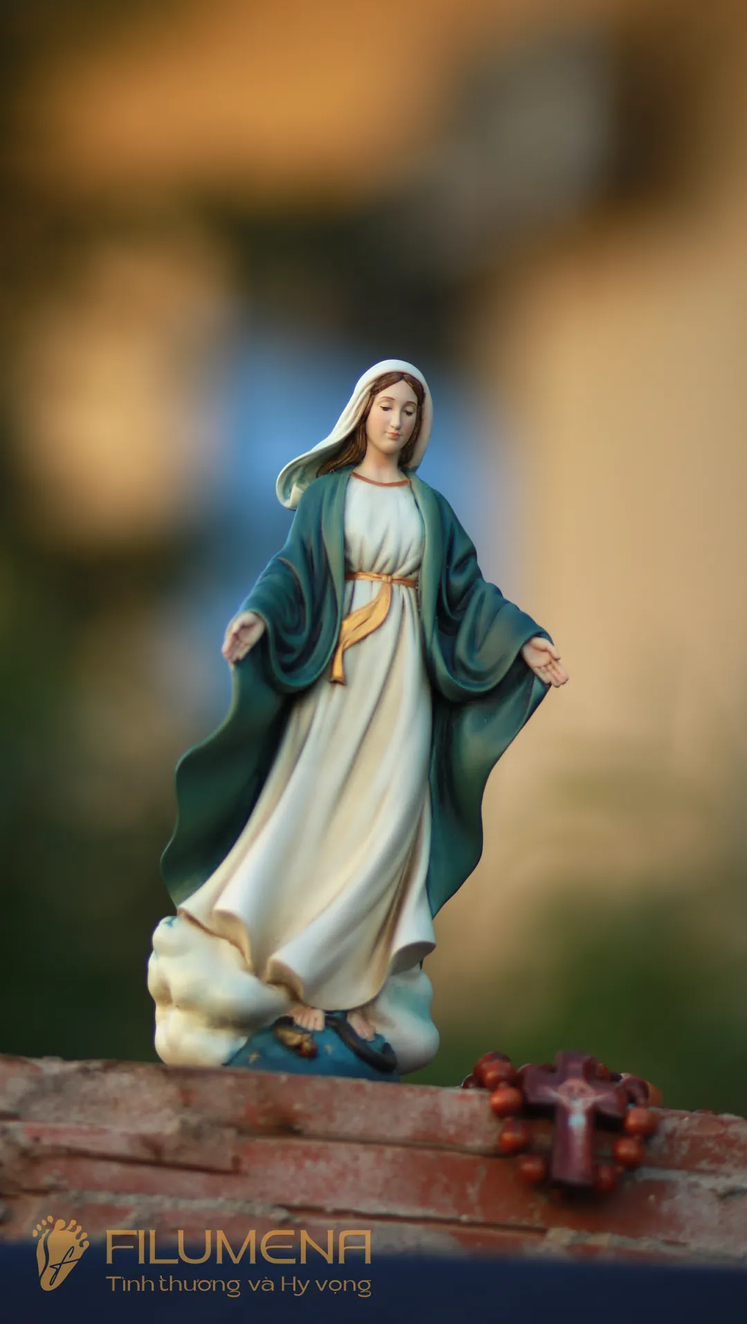 Tượng Đức Mẹ Ban Ơn áo màu xanh ô-liu. Mẫu tượng Đức Mẹ cao 20 cm để xe hơi được sáng tác bởi các nghệ sỹ điêu khắc tại tượng Công giáo Filumena. Mẫu tượng Đức Mẹ đẹp này nằm trong bộ sưu tập tượng Công giáo mini của Filumena.