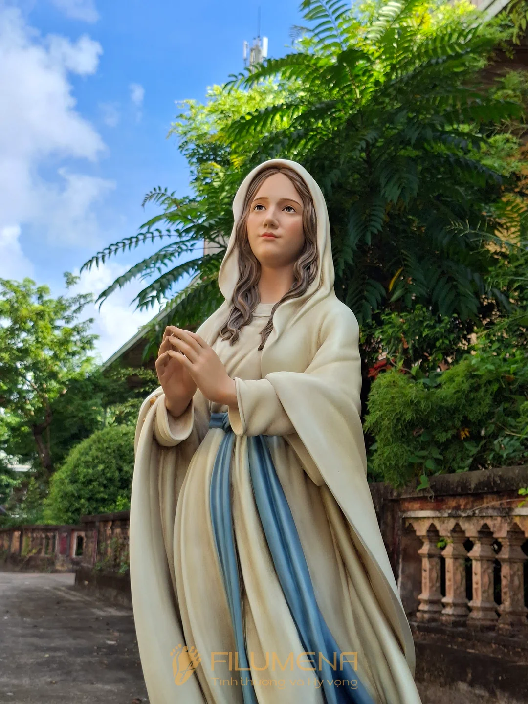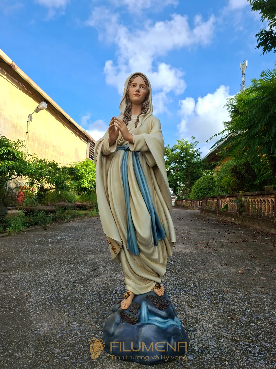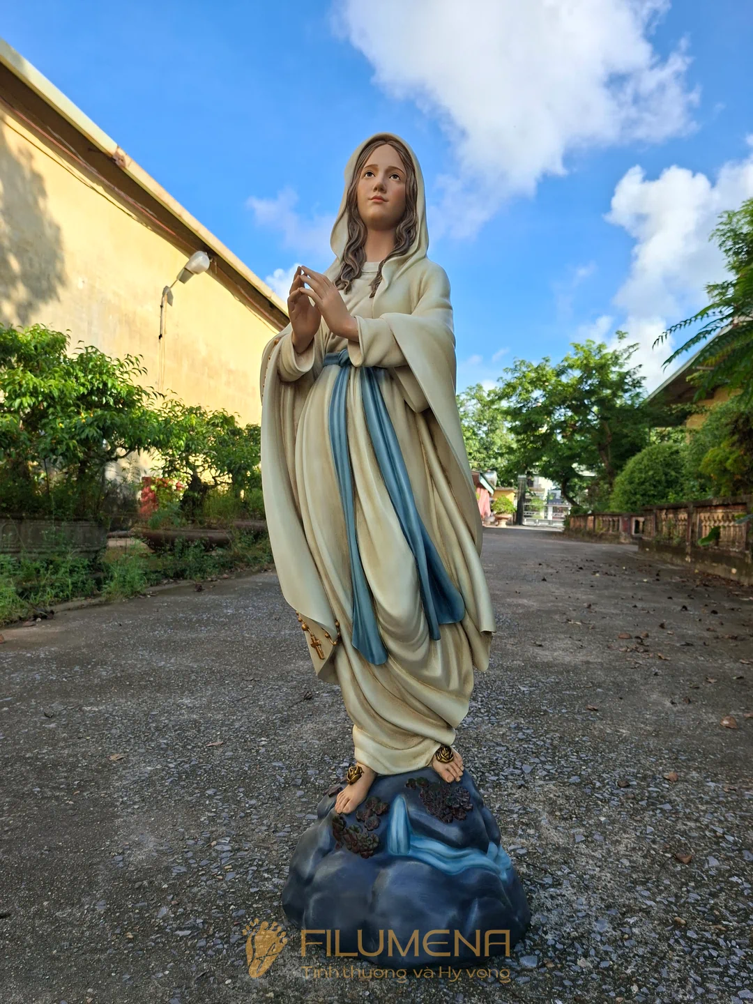 Tượng Đức Mẹ Lộ Đức cao 110 cm phù hợp với đài Đức Mẹ trước nhà hoặc trong phòng khách.