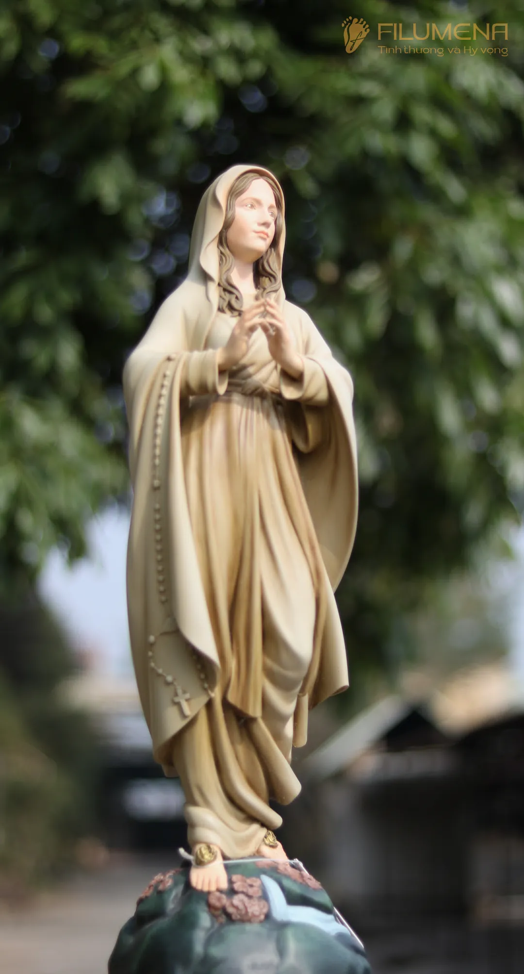 Tác phẩm tượng Đức Mẹ Lộ Đức do Filumena sáng tác năm 2022, đảm bảo lẽ công bằng cần phải có của một tác phẩm tượng thờ Công giáo.