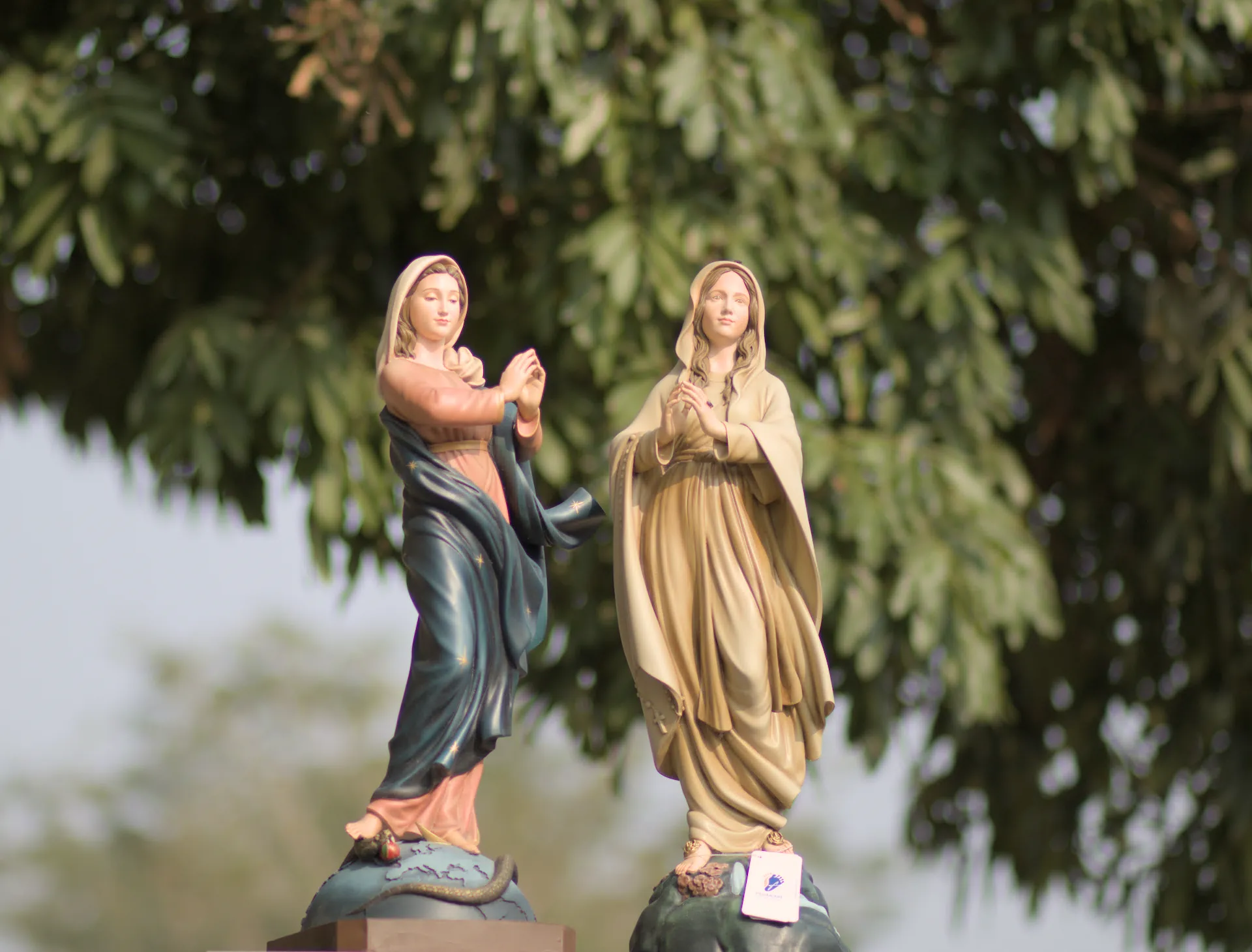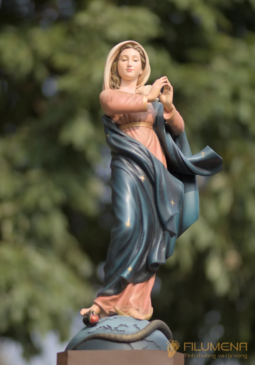 Tượng Đức Mẹ Vô Nhiễm Nguyên Tội miêu tả Mẹ với tước hiệu cao quý dựa trên một trong bốn đặc ân mà Thiên Chúa ban cho Mẹ: vô nhiễm tội tổ tông truyền.