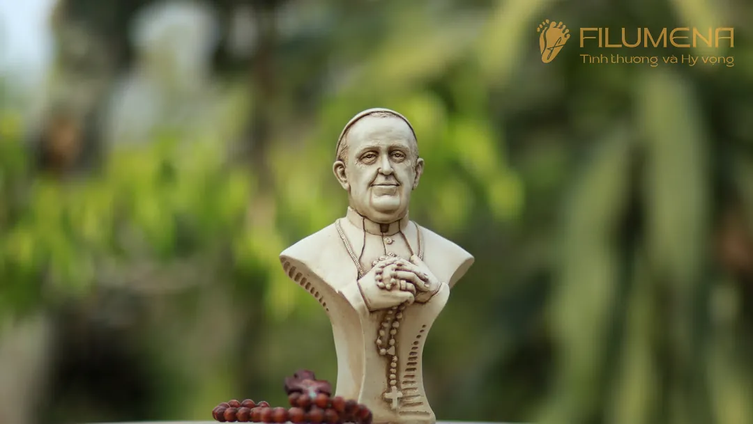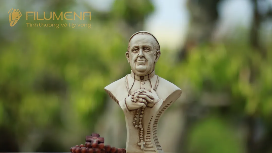 Tượng Đức Thánh Cha Phanxicô được sáng tác bởi anh Giu-se Nguyễn Cao Trí khi Đức Thánh Cha nhập viện đầu tháng 02/2025 với ước mong Đức Thánh Cha vượt qua cơn đau bệnh. Sau khi Đức Thánh Cha Phanxicô về nhà Cha trên trời, Filumena đã tham khảo ý kiến anh Giu-se Cao Trí và cùng nhau đưa tác phẩm này tới với cộng đồng, để mỗi người yêu mến Ngài có thể nhận một tượng về.