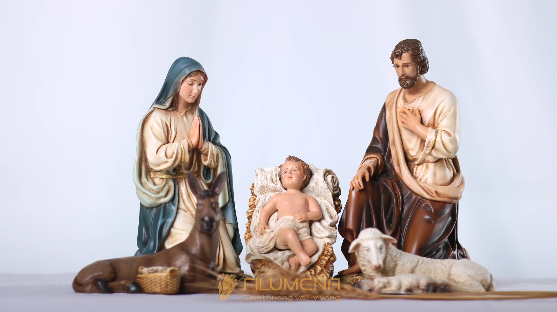 Tượng mini thường thuộc nhóm 10–30 cm. Tùy mẫu và bố cục, cảm giác “nhỏ gọn” có thể khác nhau, nhưng vẫn đủ trang nghiêm để bày trí nơi cầu nguyện.